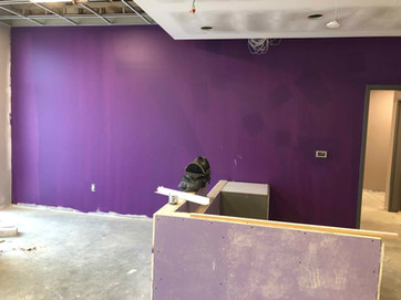 The building site has been “hopping” this past week with pouring sidewalks, paving, painting, planting trees, and the installation of the cabinetry. I especially love our purple wall in the reception and gym areas!